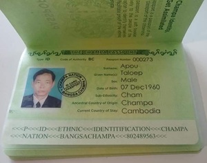Hình 10. Passport (Hộ chiếu Champa), do Thành Đài ban hành để lừa gạt người Cham và Champa. Nguồn Facebook: Thanh Dai.