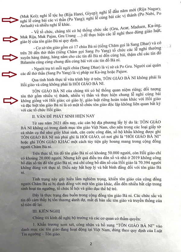 Trong thời gian gần đây, một nhóm cá nhân cực đoan đã tung ra bản kiến nghị kêu gọi Chính phủ Việt Nam công nhận “Tôn giáo Bani”. Bản kiến nghị được đính kèm danh sách chữ ký của một số chức sắc, Sư cả và tín đồ, tạo cảm giác như cả cộng đồng Bani đồng lòng đứng sau.