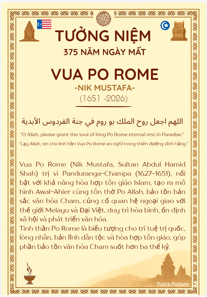 1. Putra Podam, Kỷ niệm 375 năm ngày mất vua Po Rome (Nik Mustafa): 1651-2026