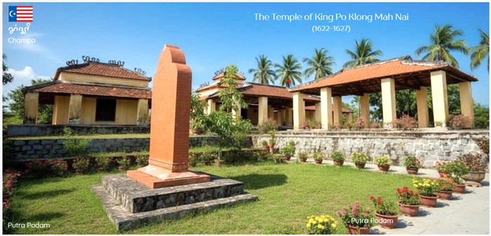 Hình 1. Po Klong Mah Nai (trị vì: 1622-1627), vị vua theo Hồi giáo (Islam) là vị vua rất sùng bái Islam, tước hiệu Hồi giáo: Maha Taha. Theo biên niên sử Panduranga (Sakkarai dak rai patao), Ngài lên ngôi năm Tuất, thoái vị năm Thỏ, trị vì 6 năm, đóng đô ở Bal Canar (Panrik - Panduranga). Đền vua Po Klong Mah Nai được xây dựng trên đồi cát gần Palei Pabah Rabaong (thôn Mai Lãnh, xã Phan Thanh) tiếp giáp thôn Lương Bình, xã Lương Sơn cách ủy ban huyện Bắc Bình khoảng 15km và thành phố Phan Thiết khoảng 50km về phía bắc. Theo H. Parmentier (Monuments chams de l'Annam, Public. EFEO, Paris, tập 1, 1909, tr. 38), Po Klong Mah Nai là tên gọi của vua Po Mah Taha, tức là cha vợ của vua Po Rome (1627-1651). Đền của Po Klong Mah Nai là nơi tôn kính vua Po Mah Taha cùng Hoàng hậu Bia Som và các thứ hậu người Champa. Ảnh: Putra Podam.