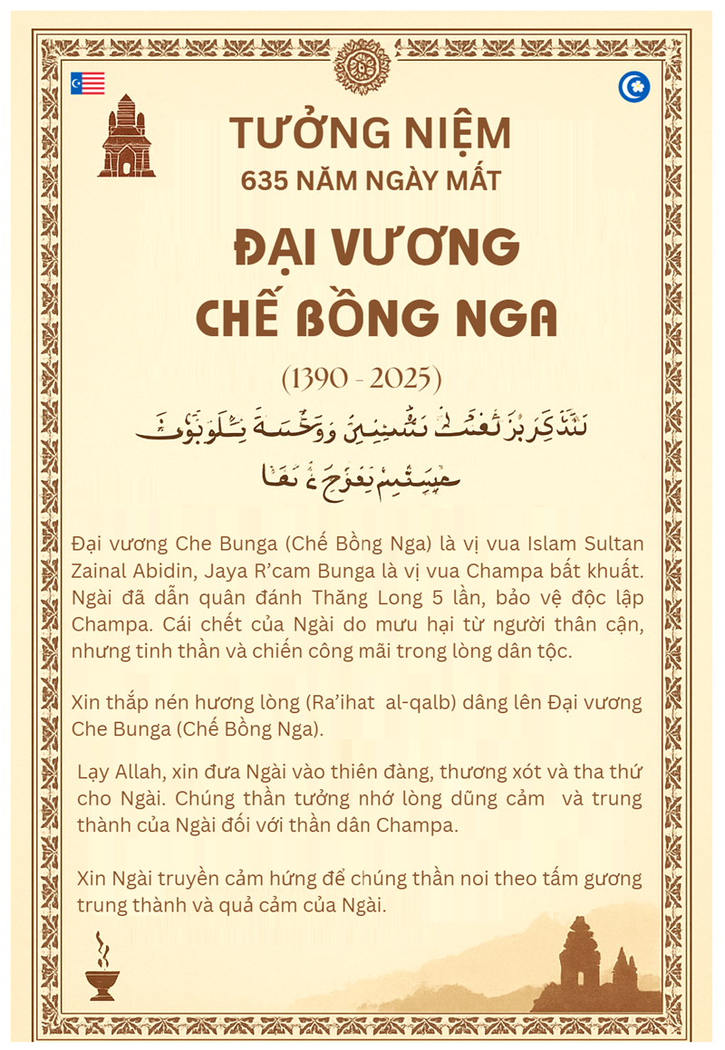 Xin để hôm nay, trong ngày tưởng niệm này, thần dân Champa xin được thắp lên nén hương lòng (Rā’iḥat al‑qalb):