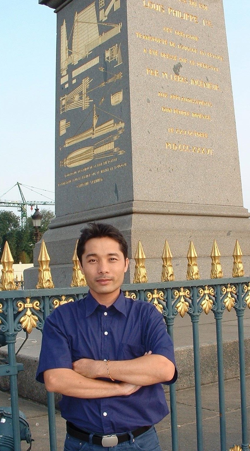 Hình 2. TS. Văn Ngọc Sáng (Putra Podam) tại Luxor Obelisk, Place de la Concorde, Paris, France.