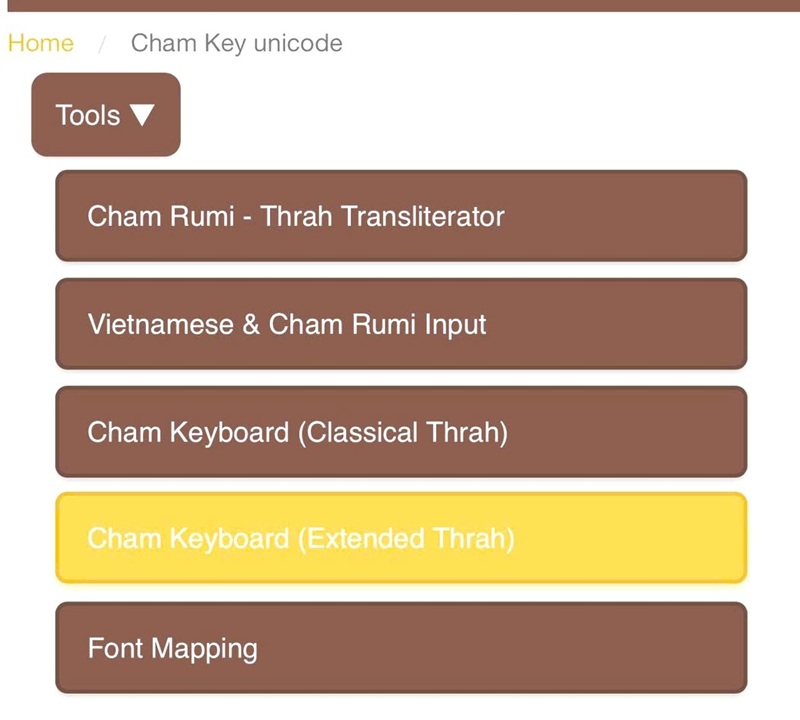 - Cham Rumi - Thrah Transliterator (Chuyển tự Cham Rumi - Thrah)