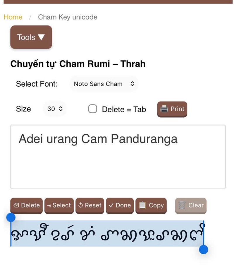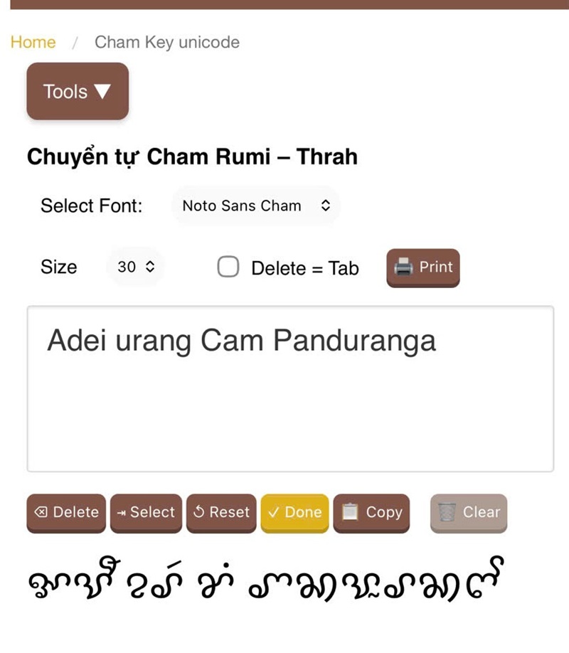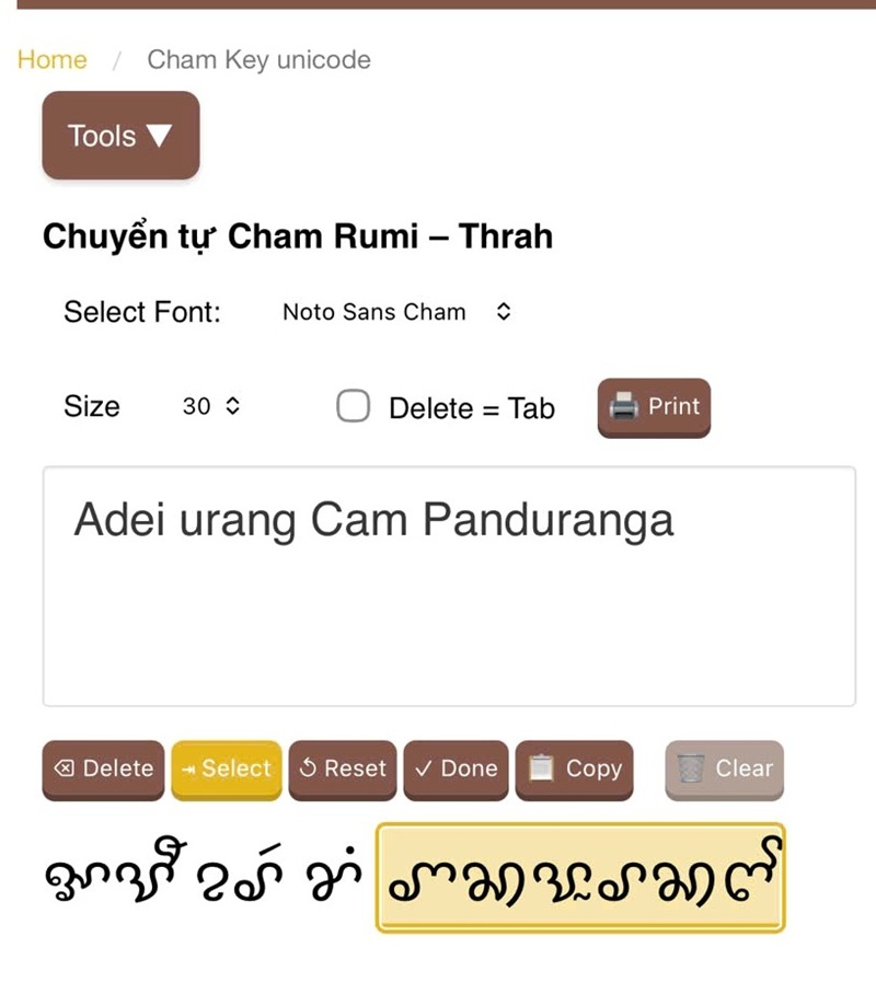 - Chuyển tự Rumi Cham sang Thrah (Cham Rumi - Thrah Transliterator)