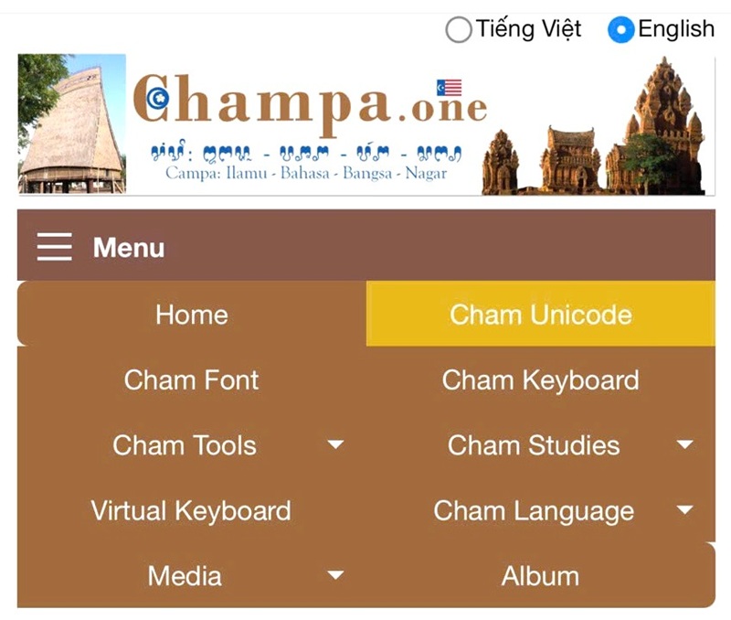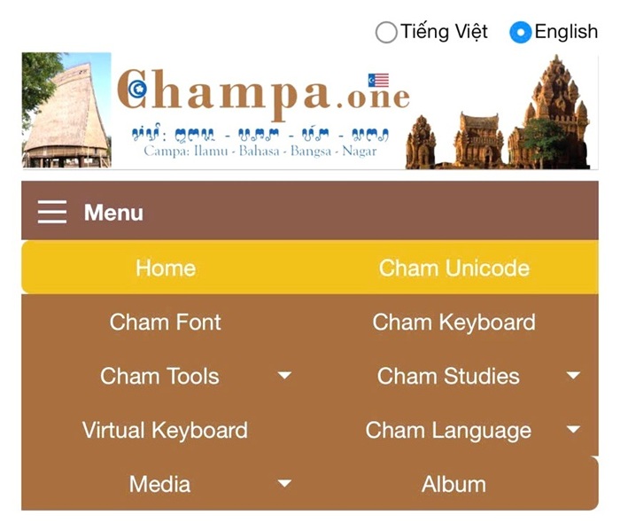Hình 19. Website Champa.one, giao diện trên nền tảng thiết bị di động (mobile phone)
