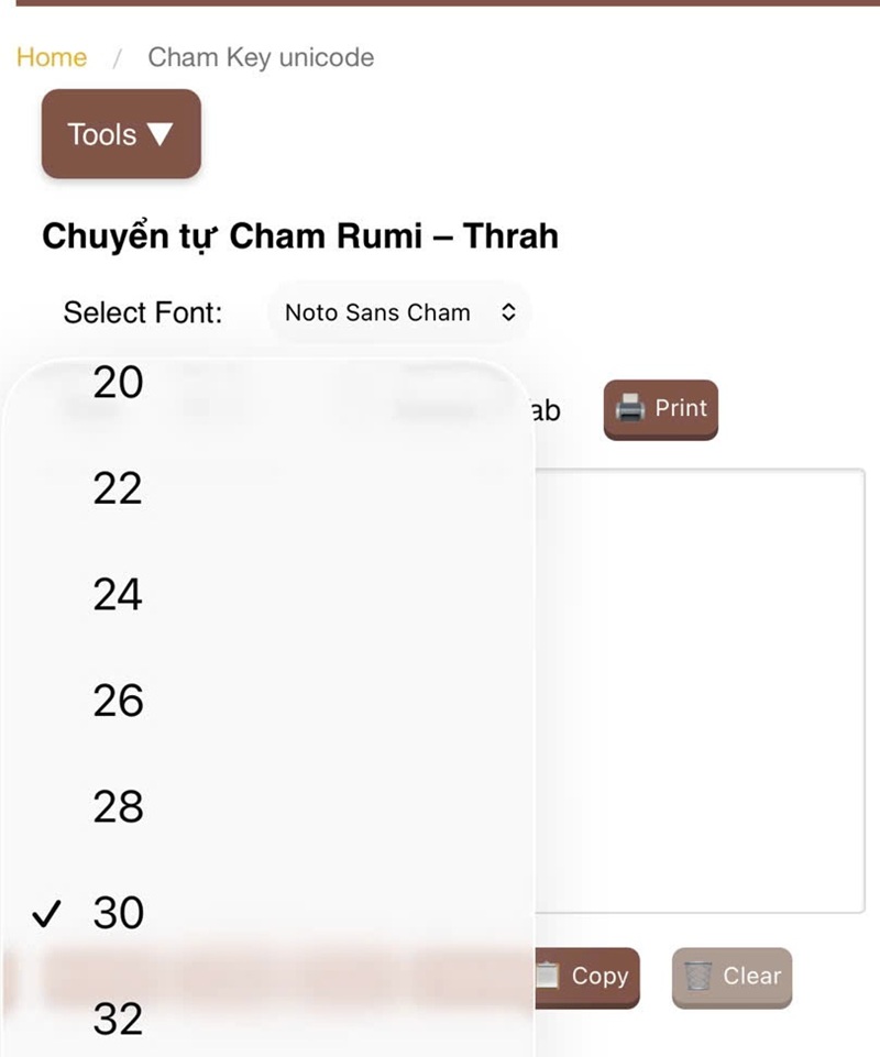 Chọn Font (Select Font): Dùng để chọn dnah sách Font. Mặc định: Font Noto Sans Cham.