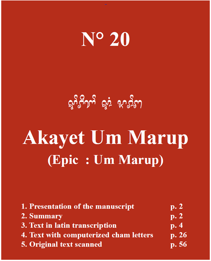 Hình 7. Tóm tắc tác phẩm Akayet Um Marup, được in trong tác phẩm mang số hiệu No. 20, Po Dharma (chủ biên). Department of Museums and Antiquities Malaysia và École Française d’Extrême-Orient, Kuala Lumpur, 2003.