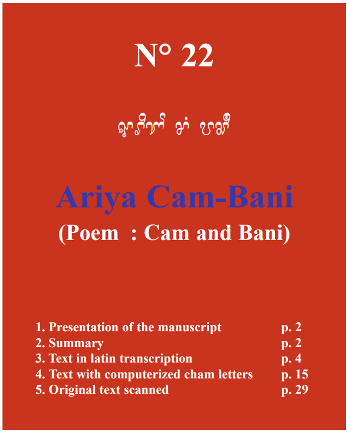Hình 10. Tác phẩm Ariya Cam - Bani (summary Cam and Bani) được in trong tác phẩm mang số hiệu No. 22, do PGS.TS. Po Dharma chủ biên, xuất bản bởi Department of Museums and Antiquities Malaysia phối hợp với École Française d’Extrême-Orient tại Kuala Lumpur năm 2003.