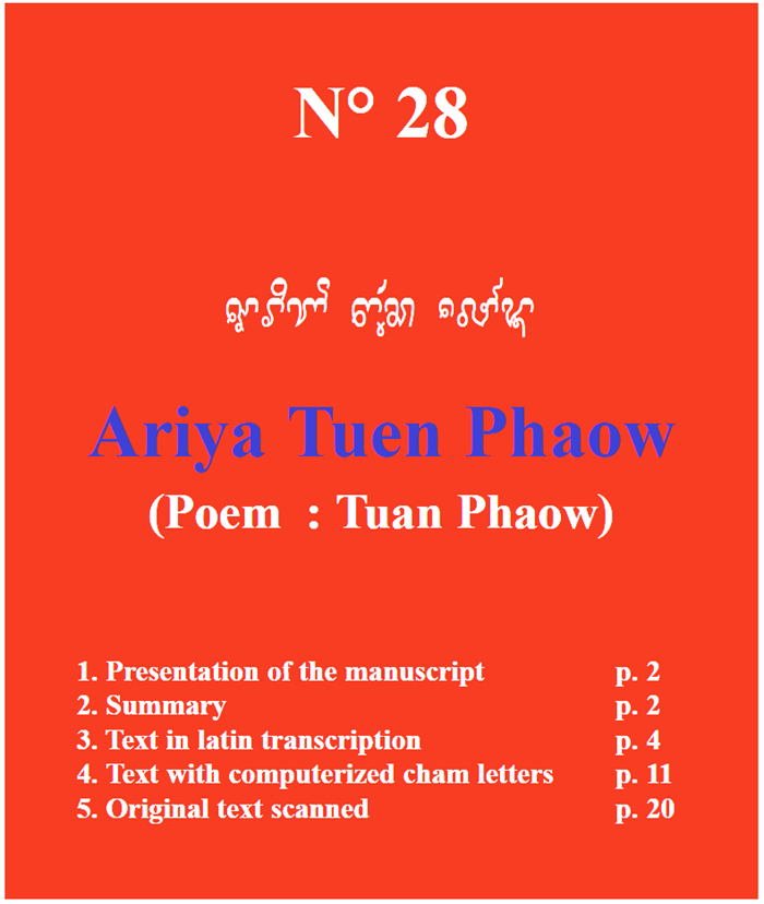 Hình 15. Tóm tắt, Ariya Tuen Phaow, trong tác phẩm mang số hiệu No. 28, Po Dharma (chủ biên), xuất bản bởi Department of Museums and Antiquities Malaysia phối hợp với École Française d’Extrême-Orient tại Kuala Lumpur năm 2003.